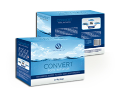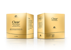Clear is also salt for pool treatment. The company proposes a visual link with cosmetic products